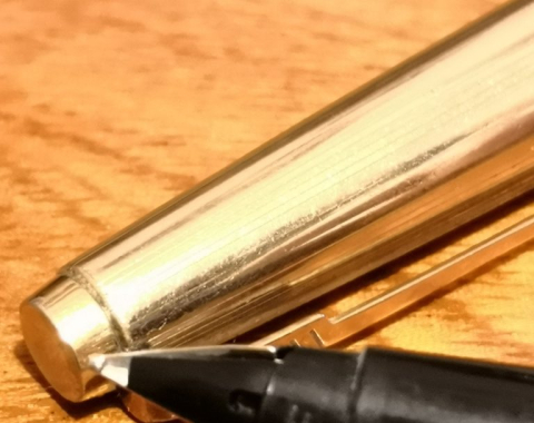 1970'S Parker 45 Insignia Fine Point X Fountain Pen 14K 1970 Rolled Gold Estilográfica