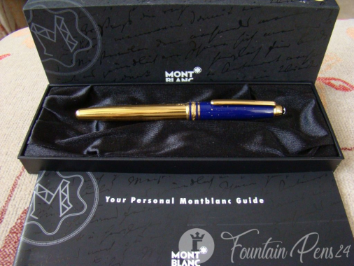 The silver mounting at the bottom of the cap is engraved with MONTBLANC MEISTERSTUCK. The Pen is named and fashioned after Ramses, one of the most powerful pharaoh's of the Egyptian Empire who reigned during the 13th century BC. Lapis was known to be the pharaoh's favorite stone, often used for amulets and other ornaments.