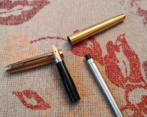 PARKER 75 Insignia GOLD Made in USA fountain pen Nib M estilográficaverified ad